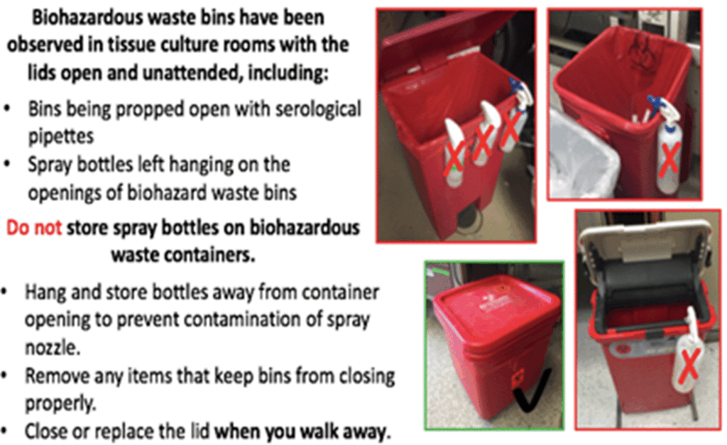 PLEASE SEE BELOW.  Some of the most commonly cited items are related to open or improperly labeled medical waste and sharps containers.  Please ensure that all biohazard and sharps containers are closed when not in use.  This includes the reusable sharps containers as well; the lid should be pushed closed but NOT locked.