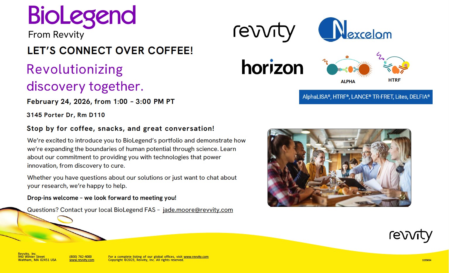 Cytiva Office Hour When: Feb 5, 2026, 11am - 1pm Where: Rm 1240, 1651 Page Mill Road, Palo Alto CA Bring your questions on: chromatography, Western blotting, protein interactions/kinetics, cell culture, molecular diagnostics or anything life science, we'll try to help! We'll bring snacks and swags! Cytiva Contact Name: Nitish Agrawal Email: nitish.agrawal@cytiva.com